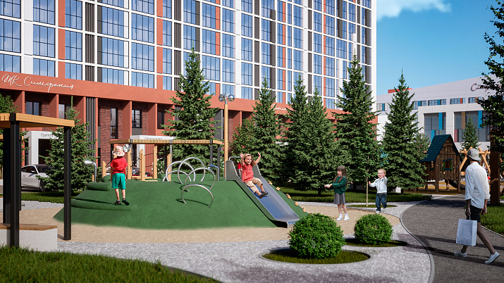 Жилой комплекс “Симфония” отличается уютными внутренними дворами с оригинальным ландшафтным дизайном, огороженной территорией и отсутствием автомобилей, что делает их безопасными и удобными для отдыха и прогулок.